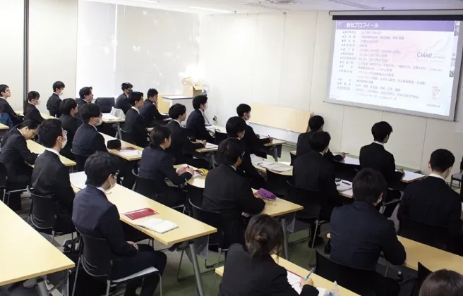 入学後、すぐに実施しています。就職活動の仕組みをはじめ、自己分析やビジネスマナーなどの講座を行います。